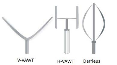 []{#_bookmark2 .anchor}Figure 1 Illustrations of V, H, and Darrieus VAWT configurations