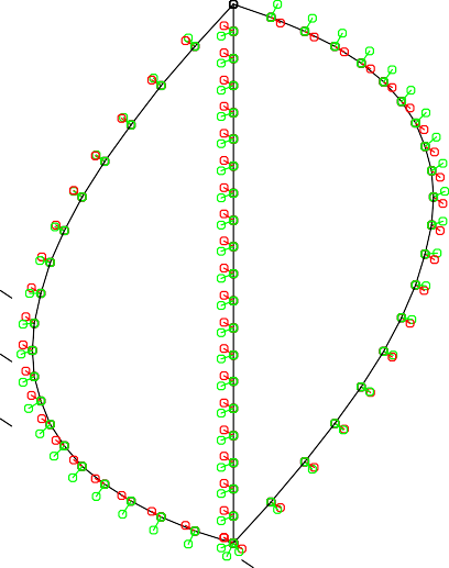 This convention of blade placement will also produce element orientations with tangential vectors along the trailing edge of a cross section and normal vectors outward from the machine center.