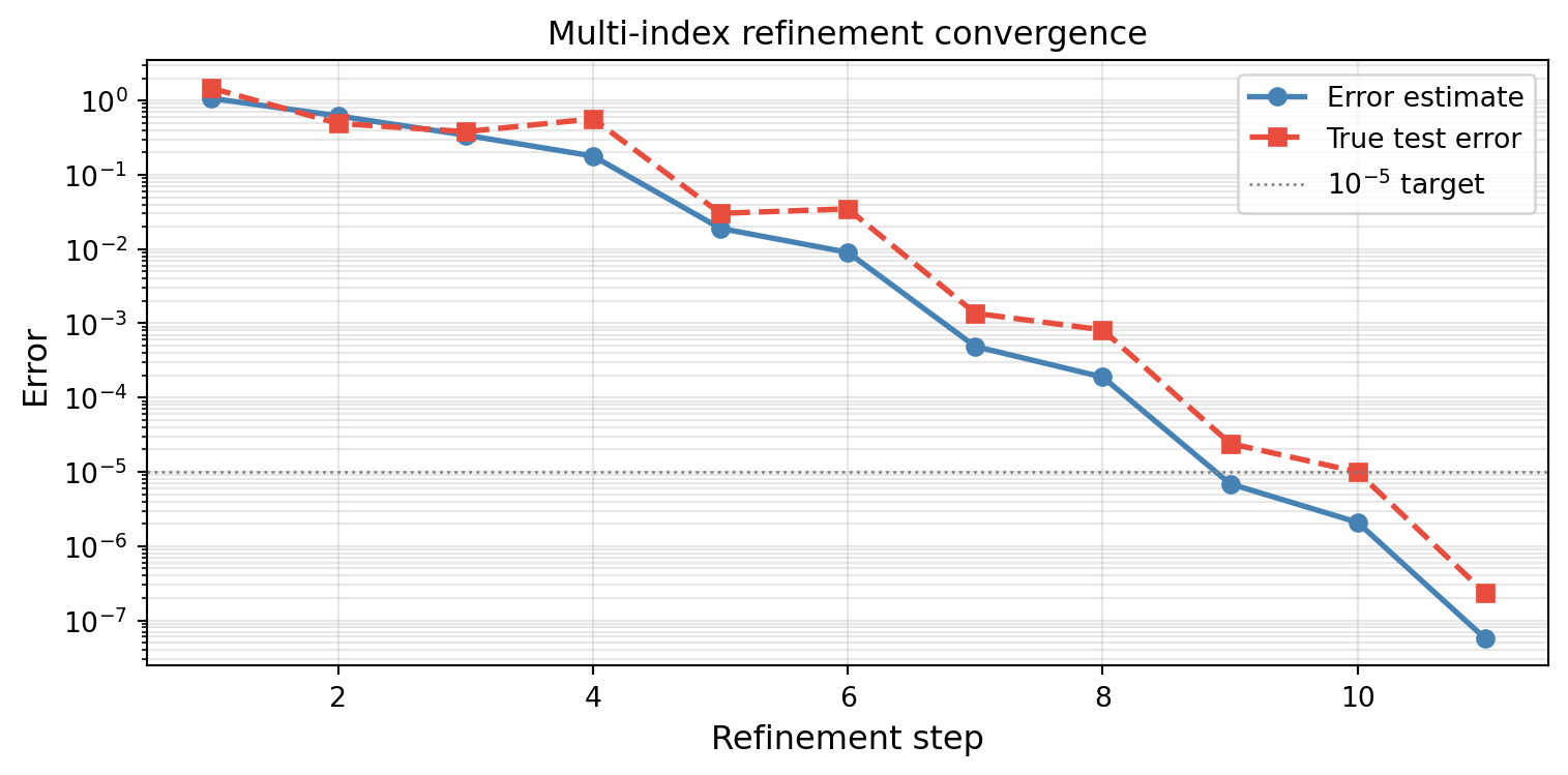 Complete Adaptive Sparse Grids before this tutorial. You should understand the Smolyak combination technique, adaptive refinement with step_samples()/step_values(), and admissibility criteria.