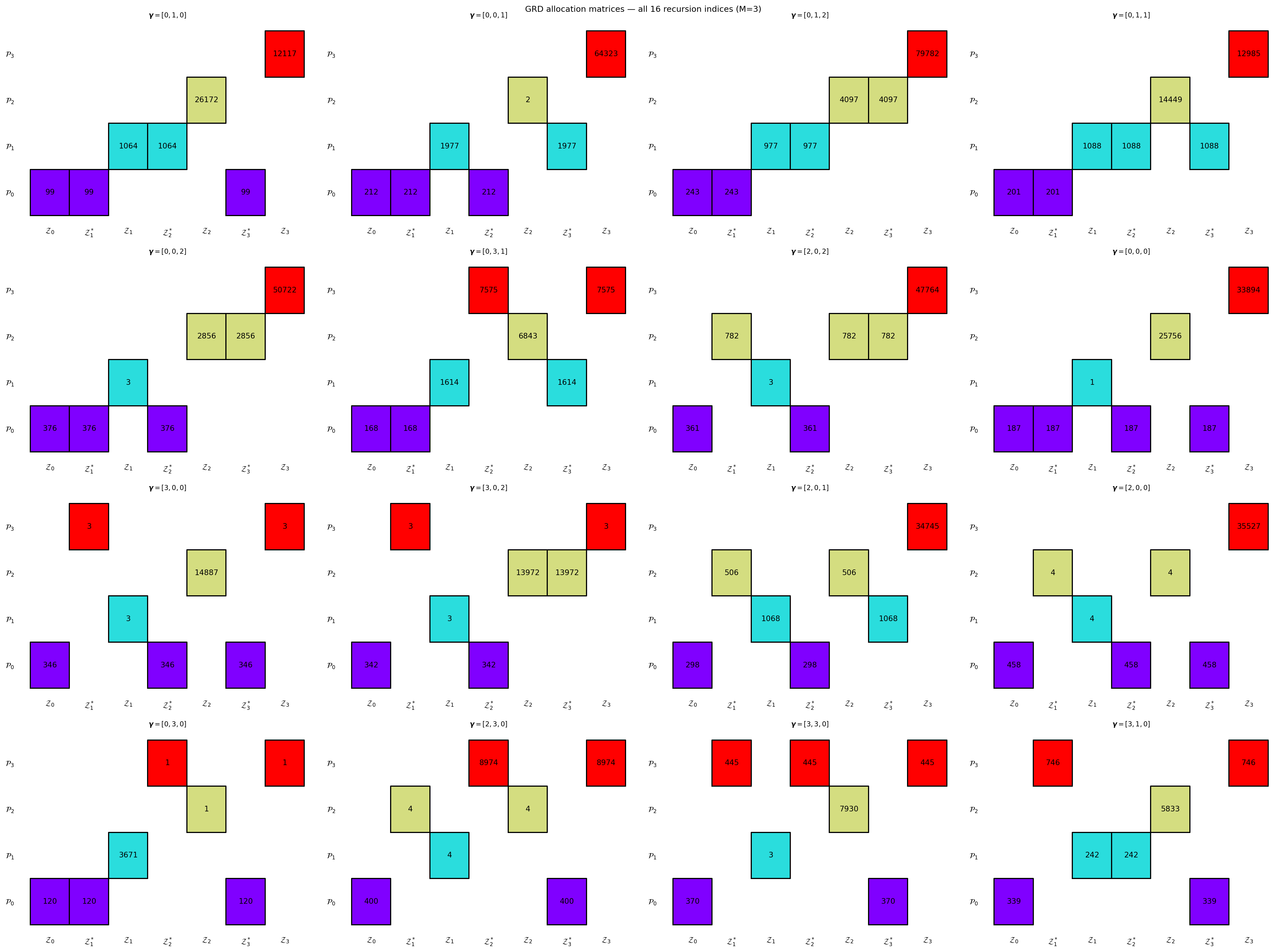 - The allocation matrix is fully determined by the recursion index + family; the