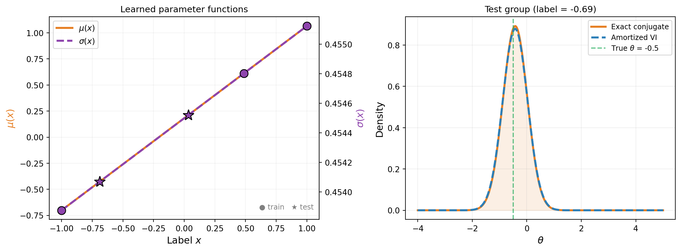 - Verify that an amortized model recovers exact conjugate posteriors for training data